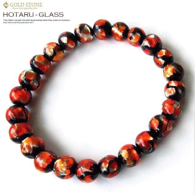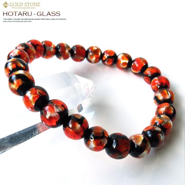 ホタルガラス ブレスレット8mm ブラッドオレンジ とんぼ玉 沖縄 お土産