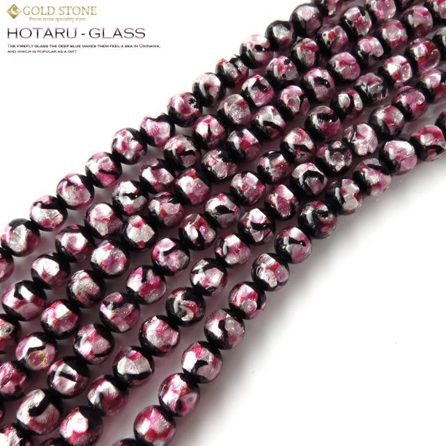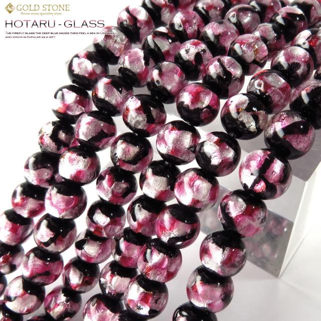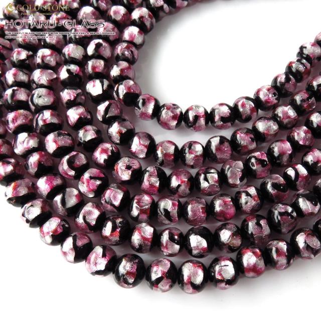 ホタルガラス 一連 ビーズ 8mm 長さ40cm ピンク とんぼ玉 沖縄 お土産