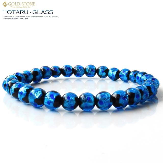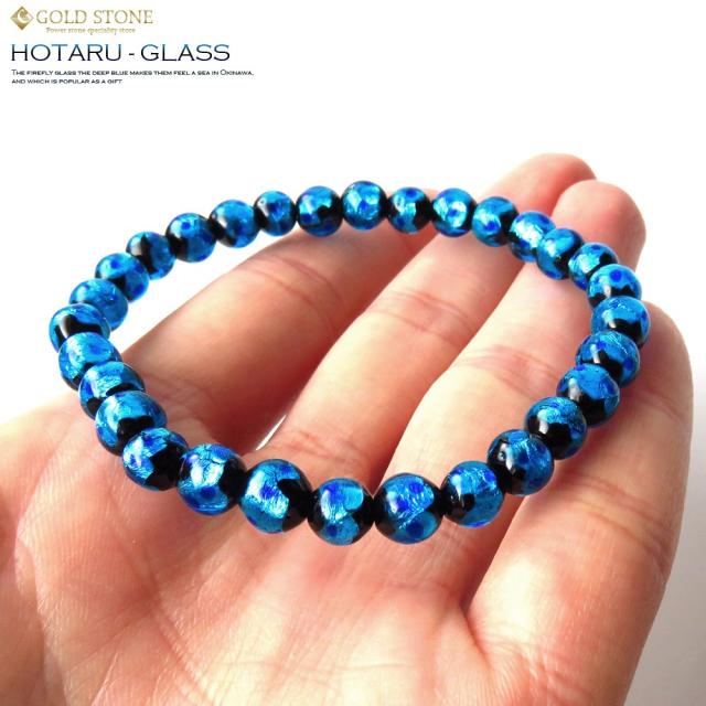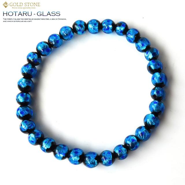 ホタルガラス ブレスレット 6mmブルー 青色 とんぼ玉 沖縄 お土産
