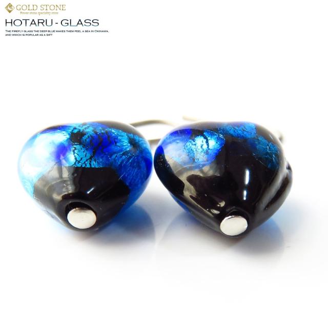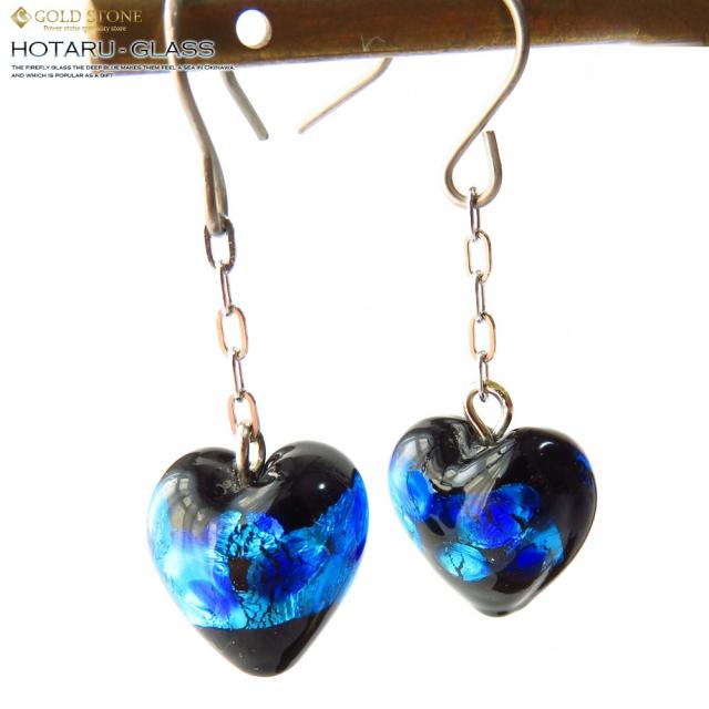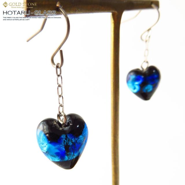 揺れる ホタルガラス ピアス ハート チタン製 両耳用 とんぼ玉 沖縄 お土産