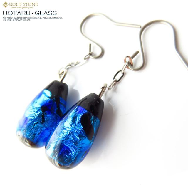 揺れる ホタルガラス ピアス しずく チタン製 両耳用 とんぼ玉 沖縄 お土産