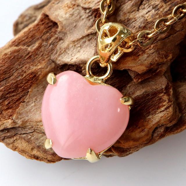 ピンクオパール ネックレス 天然石 ペンダント ハート型 Silver925 チェーン付き