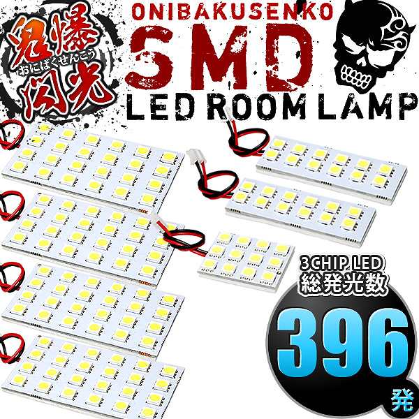 総発光数396発 鬼爆閃光 LEDルームランプ 200系 ハイエース グランドキャビン [H16.8-H25.12] 7点セット
