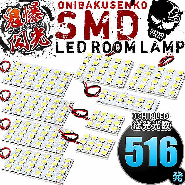 総発光数516発 鬼爆閃光 LEDルームランプ E51 エルグランドライダー [H14.5-H22.7] 9点セット