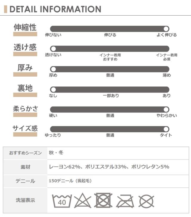 | 素材 | レーヨン62%、ポリエステル33%、ポリウレタン5% 150デニール |