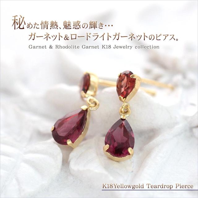 ピアス レディース 18金 ガーネット k18 18k ロードライトガーネット 赤 レッド 揺れる 宝石 K18 プレゼント アクセサリー おしゃれ 雫型 ティアドロップ ゆれる ホワイトデー お返し 記念日 誕生日 ギフト 贈り物 女性 彼女 妻 嫁