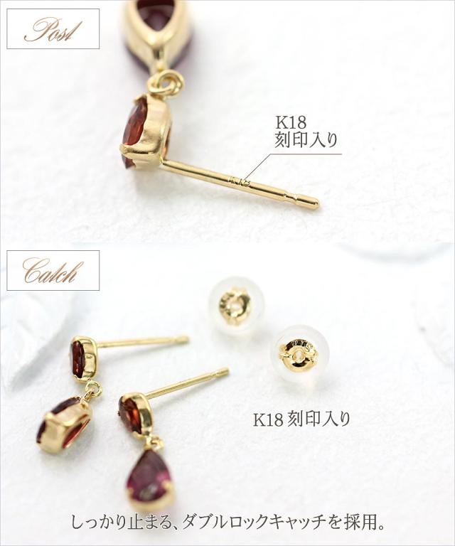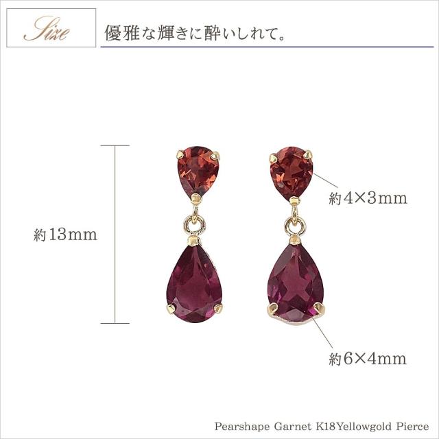 | 地金・素材 | ・ガーネット ペアーカット ・ロードライトガーネット ペアーカット ・地金:K18YG(18金イエローゴールド) ・ダブルロック キャッチ |