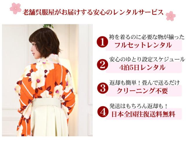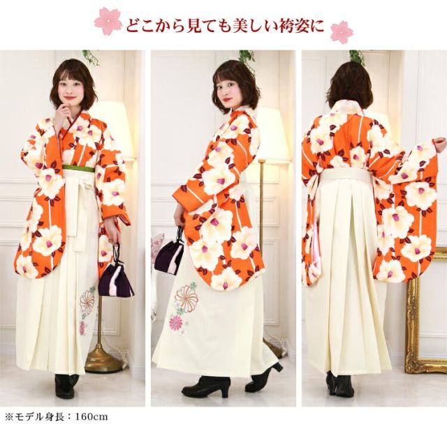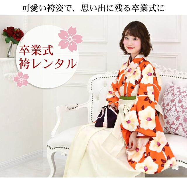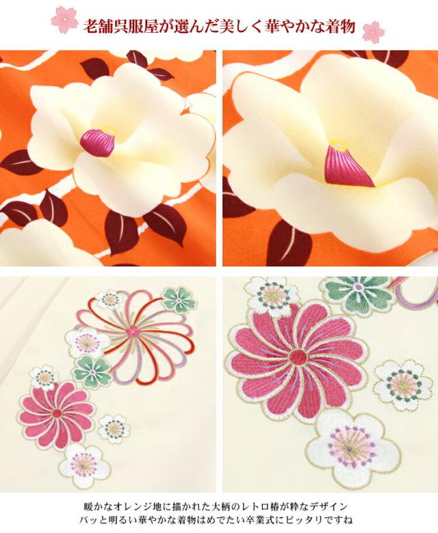 卒業式 袴 レンタル 袴セット 女性 卒業式袴セット 「オレンジ地にレトロ椿」 レトロ