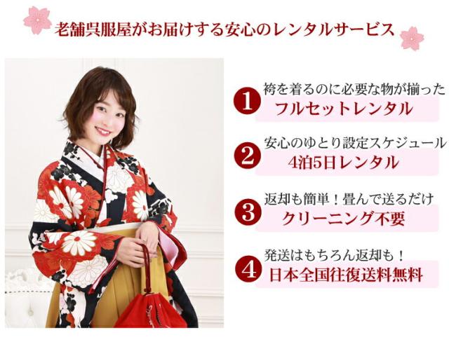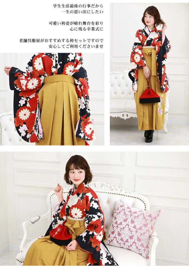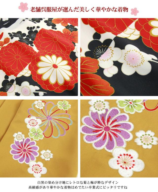 卒業式 袴 レンタル 袴セット 女性 卒業式袴セット 「白黒の染め分け地にレトロ菊・梅」 レトロ