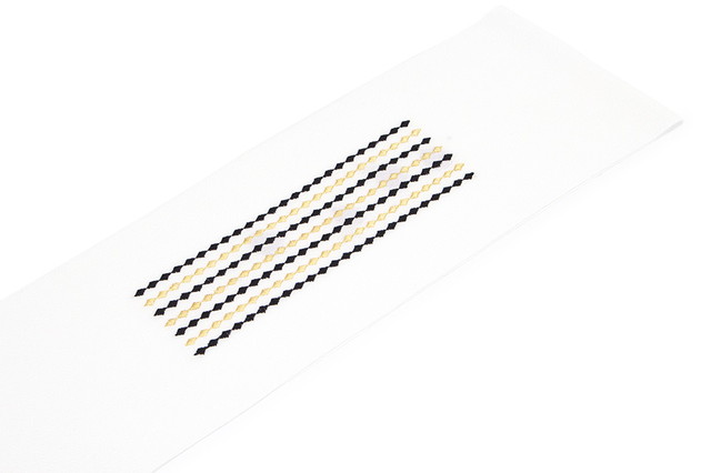 上品な縮緬の生地に、ラインストーンに薔薇と菱縞の刺繍が施された左右非対称の柄となります。