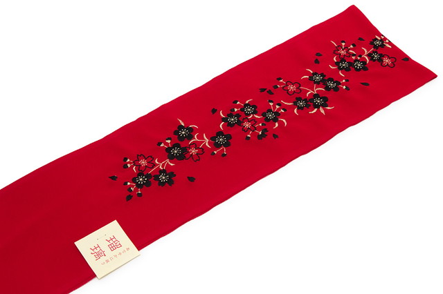 半襟 刺繍 振袖 成人式 半衿 赤 レッド 桜 さくら サクラ 花 正絹 和装小物 女性 レディース 日本製