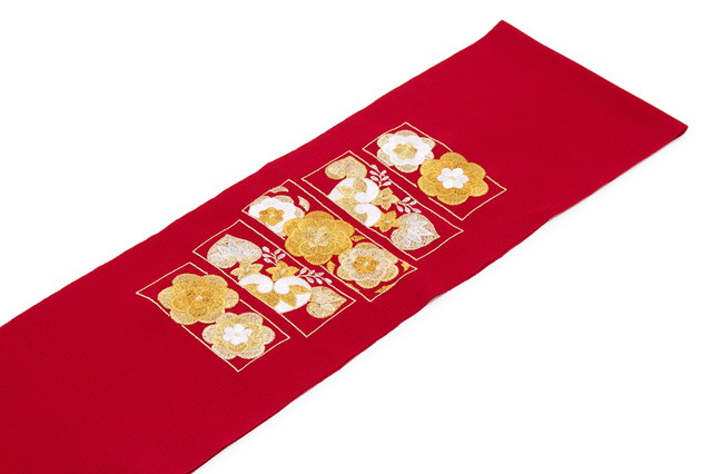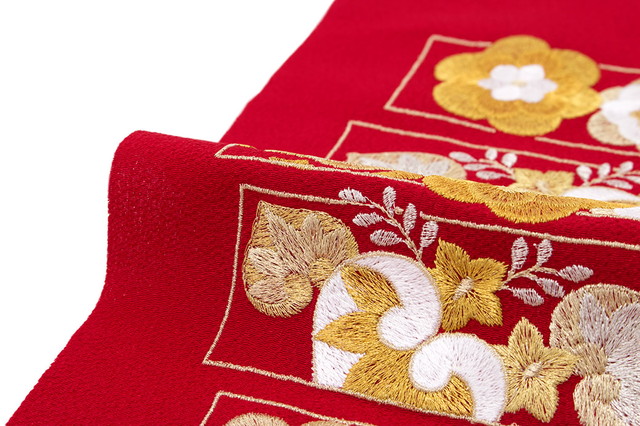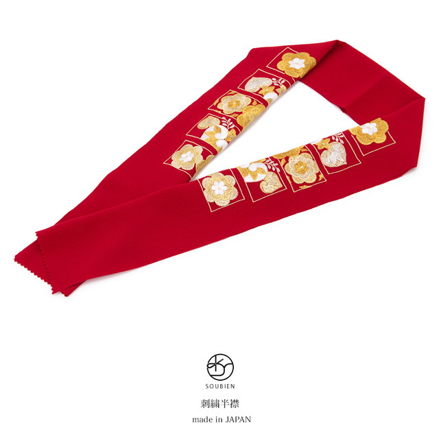 半襟 振袖 刺繍 成人式 半衿 卒業式 袴用 赤 レッド 橘 梅 花 色紙 縮緬 ちりめん 結婚式 フォーマル 和装小物 女性 レディース 日本製 送料無料