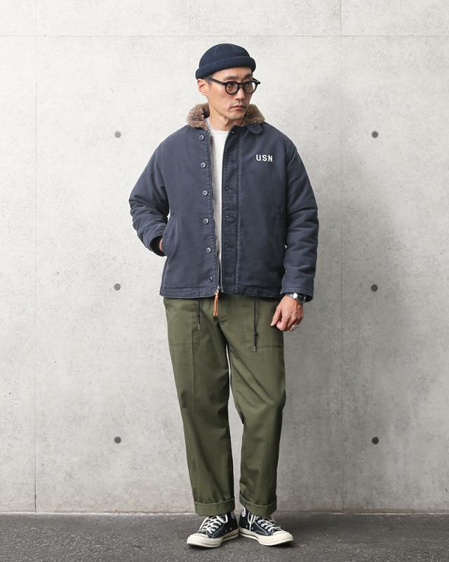 1943年にアメリカ海軍によって制式採用された傑作ミリタリージャケット「N-1」を復刻再生産!ジャングルクロスと呼ばれる細畝のコットンピケや、細部の質感・ディテールなどオリジナルがもつ雰囲気を国内生産にて丁寧に復刻しました。身幅とアームをやや細め、着丈はやや長めにリサイズしたモデルとなっています。ウォッシュ加工を施すことで一着ごとに違った味が出ており、世界でたった一つのオンリーワンアイテムとして仕上げられてます。