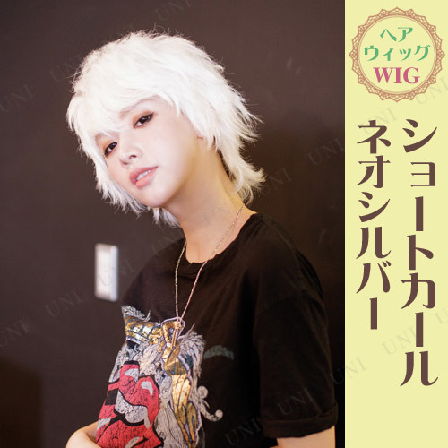 コスプレ 仮装 ショートカール ネオシルバー ジグ ウィッグ コスプレ小物 かつら パッケージサイズ: