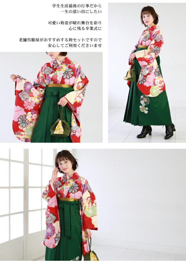 卒業式 袴 レンタル 女 袴セット 女性 卒業式袴セット 「赤地に鹿の子柄雲取りと菊・桜」 レトロ