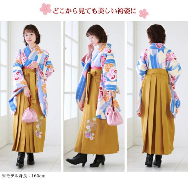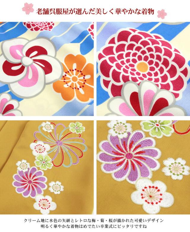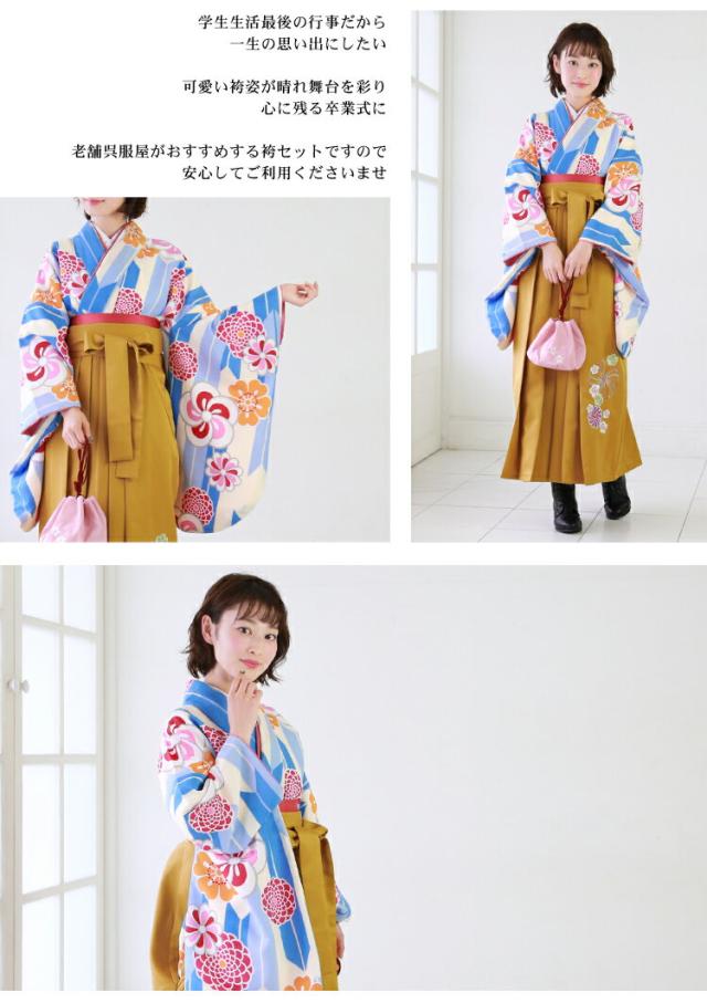 卒業式 袴 レンタル 女 袴セット 女性 卒業式袴セット 「クリーム地に水色の矢絣とレトロ梅・菊・桜」 レトロ
