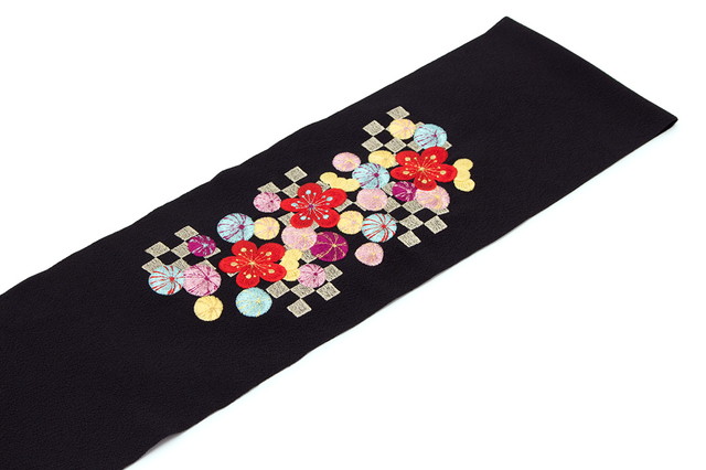 半襟 刺繍 振袖 成人式 半衿 卒業式 袴用 結婚式 梅 鞠 市松格子 縮緬 ちりめん 黒 ブラック フォーマル 和装小物 女性 レディース 日本製