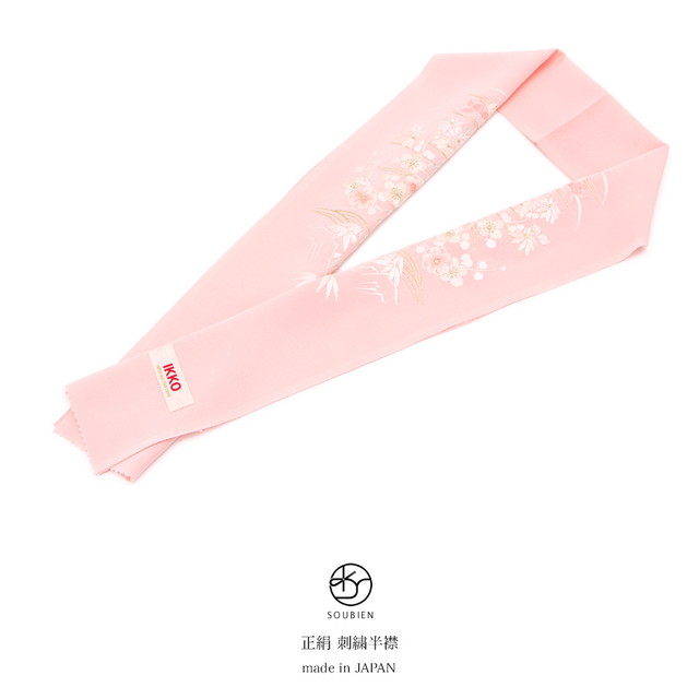 半襟 刺繍 振袖 成人式 半衿 ピンク 波 梅 竹 露草 菊 正絹 フォーマル 和装小物 女性 レディース 日本製