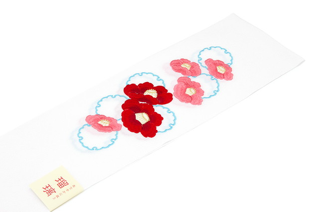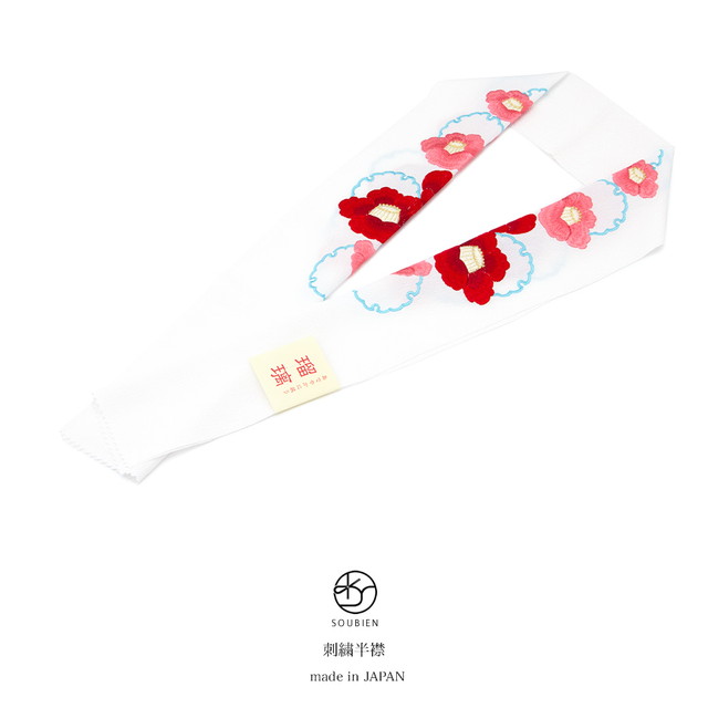 半襟 刺繍 白 振袖 成人式 半衿 ホワイト 赤 椿 雪輪 縮緬 ちりめん 結婚式 フォーマル 和装小物 女性 レディース 日本製