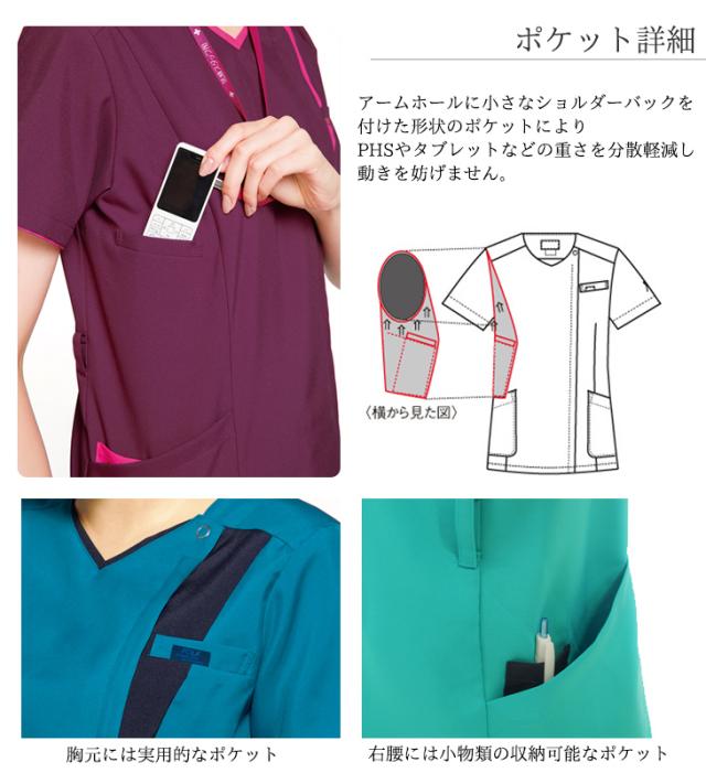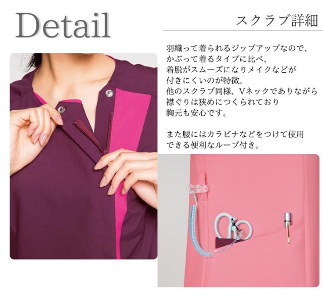 スクラブ 医療用 白衣 メディカル レディース 女性 ジップスクラブ 介護 カラー FOLK ウェア 速乾性