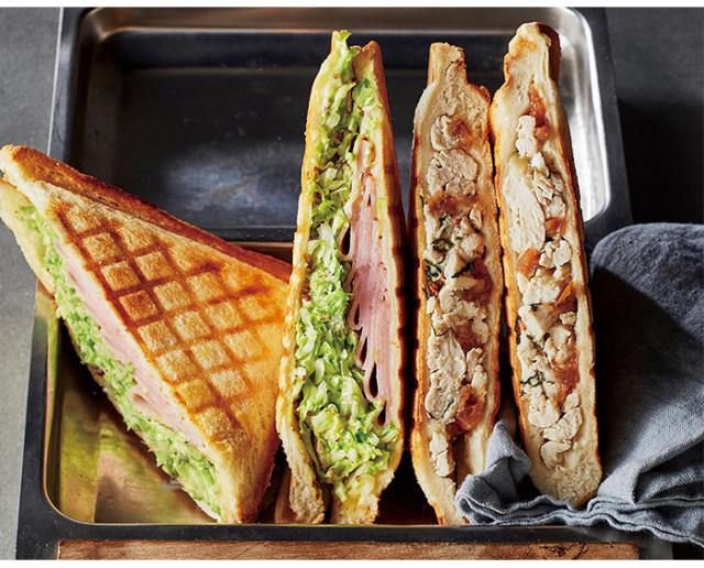 具材をたっぷり挟んだ厚焼きサンドも耳までカリッと。