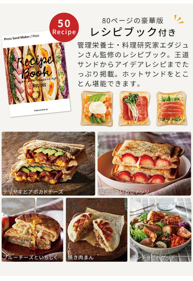 【特典付】 ホットサンドメーカー レコルト recolte プレスサンドメーカー プラッド 耳まで 厚焼き ホットサンド RPS-2 レシピ付