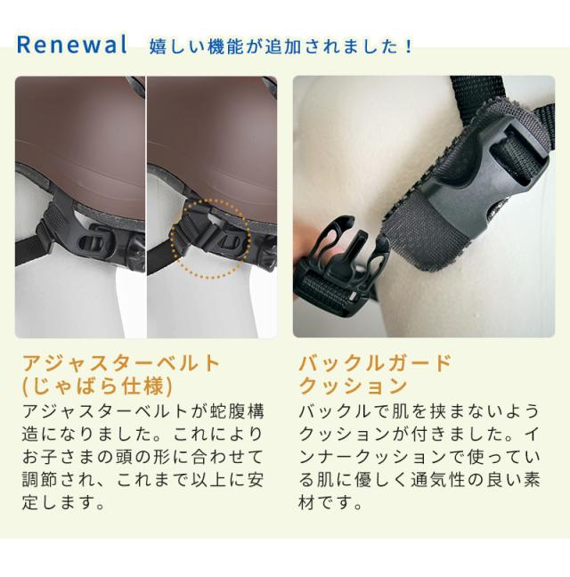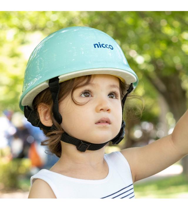 普段の生活にとけこむ、シンプルでおしゃれな「nicco(ニコ)」のこども用ヘルメットです。「ハードシェル」と「複合発泡」の採用で、コンパクトでも十分な安全性を実現しました。衝撃性に優れたハードシェル、かぶりやすくずり落ちにくいベルトの仕様、インナーパッドは取り外して水洗い可能と、機能性もバツグン。浅めのかぶりで小さな頭でも目にかからず、お子さまが安全に気持ちよくかぶれる工夫もされています。