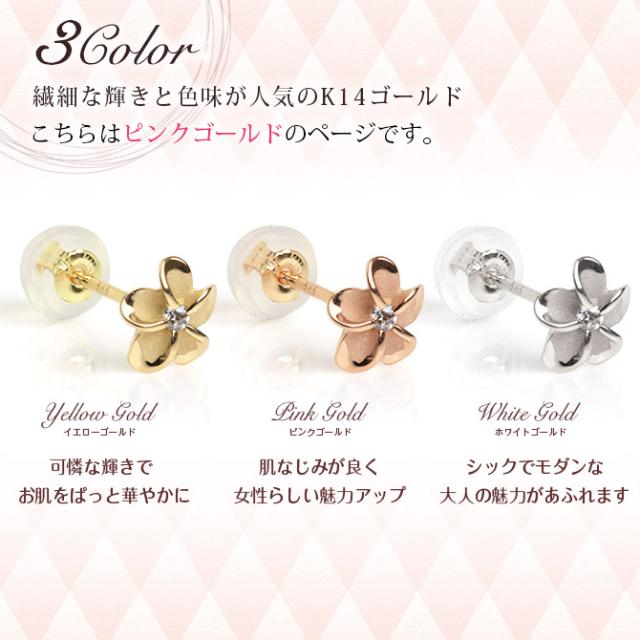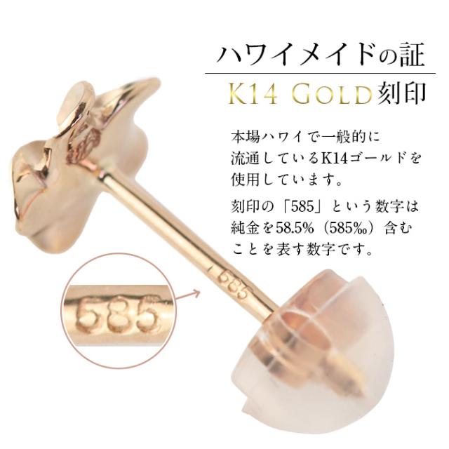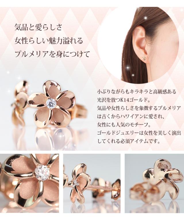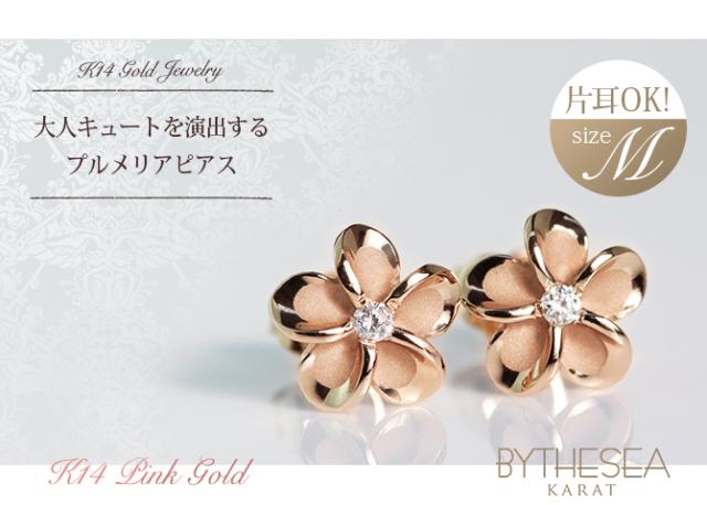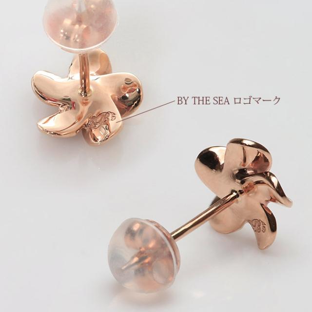 ハワイアンジュエリー ピアス プルメリア ピンクゴールド K14 ピアス Mサイズ 花8mm 片耳(1個)購入可 ジルコニア 14K シリコンキャッチ 20G ゲージ BY THE SEA バイザシー 彼女 妻 女性 レディース 誕生日 プレゼント クリスマス 【品番:GE102R】