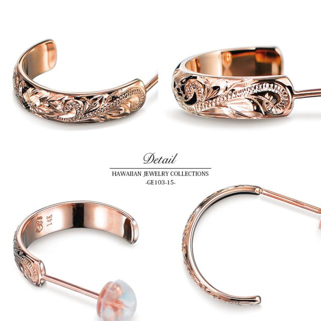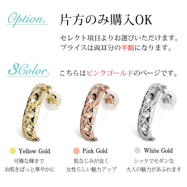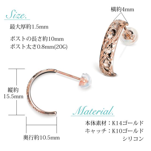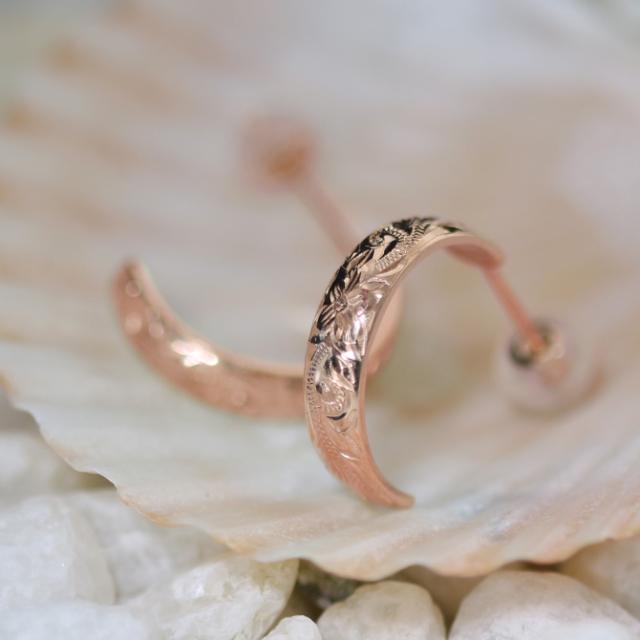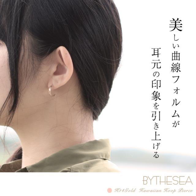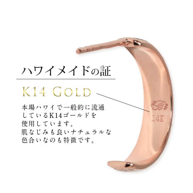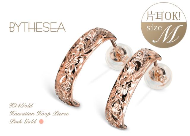 ハワイアンジュエリー フープピアス ピアス ピンクゴールド Mサイズ 半円 三日月 ハーフムーン 片耳(1個)購入可 K14ピンクゴールド 14K シリコンキャッチ シンプル 20G ゲージ BY THE SEA バイザシー 彼女 妻 女性 レディース プレゼント ホワイトデー 【品番:GE103-15R】