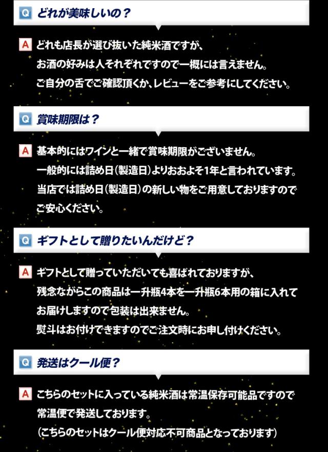 検索キーワード:酒 日本酒 純米酒 飲み比べ セット あす楽 プロの選んだ夢の純米酒 福袋 一升瓶 1800ml 4本セット 送料無料 無添加 日本酒 ギフト 辛口 1.8L 福袋 日本酒 飲み比べセット Gift 手土産 退職祝い バレンタイン お酒 Gift 詰め合わせ 日本酒セット