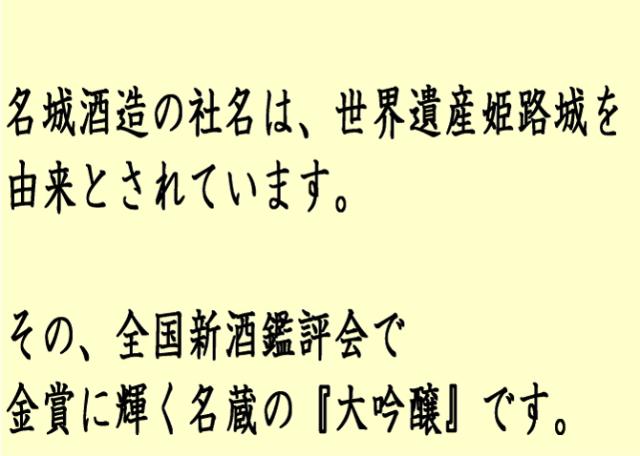 兵庫の名蔵、名城酒造の【中取り大吟醸】