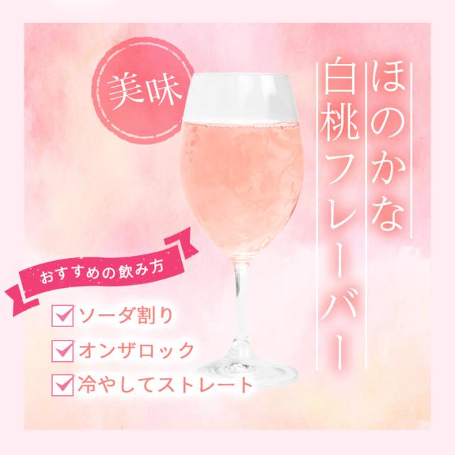 ほのかな白桃フレーバーがおいしくて、冷やしてストレート・ソーダ割り・オンザロックなどの飲み方がおすすめ。