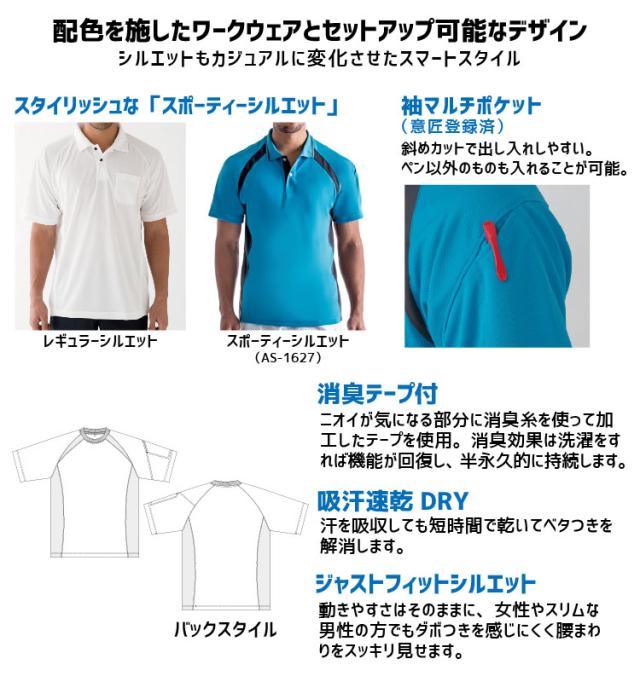 コーコス 半袖Tシャツ AS-627 CO-COS メンズ レディース 半袖 消臭 吸汗速乾 抗菌 防臭 ドライ スポーツ 作業服 作業着 【春夏】