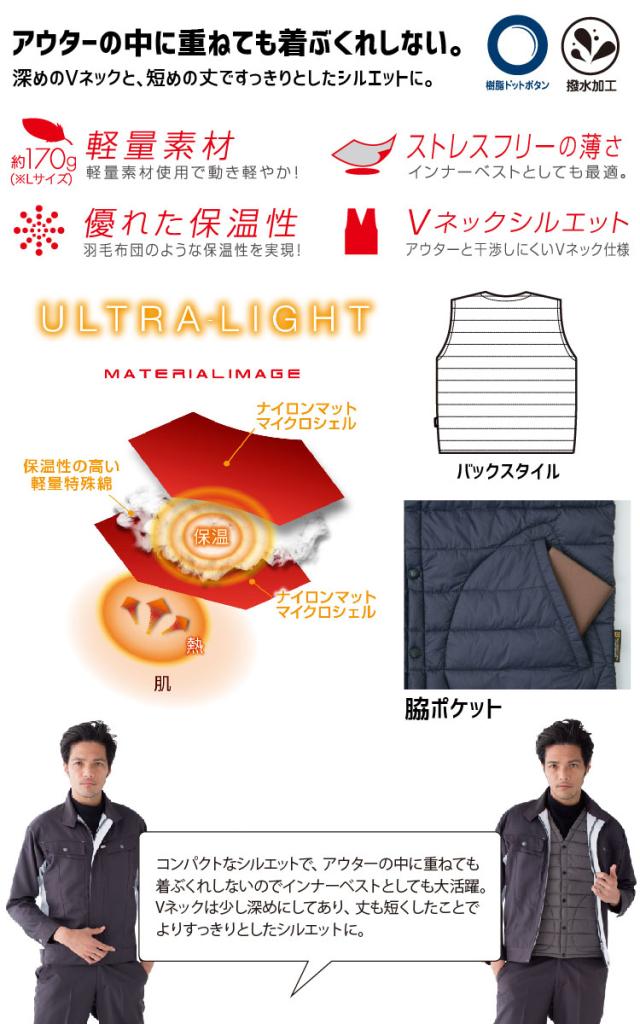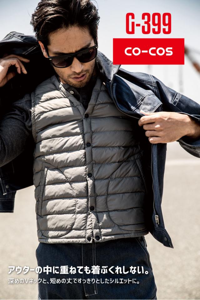 コーコス Vネックベスト G-399 CO-COS メンズ レディース 軽量 保温 撥水 作業服 作業着 防寒服 防寒着 【秋冬】