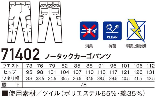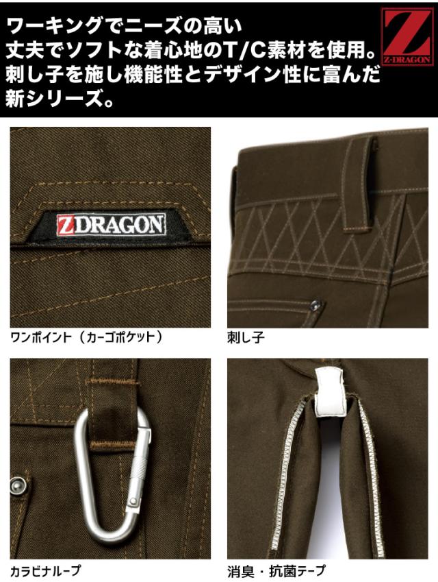 Z-DRAGON ノータックカーゴパンツ 71402【秋冬】作業服 作業着 ズボン T/C素材 刺し子 ジードラゴン ユニフォーム 自重堂 71400シリーズ