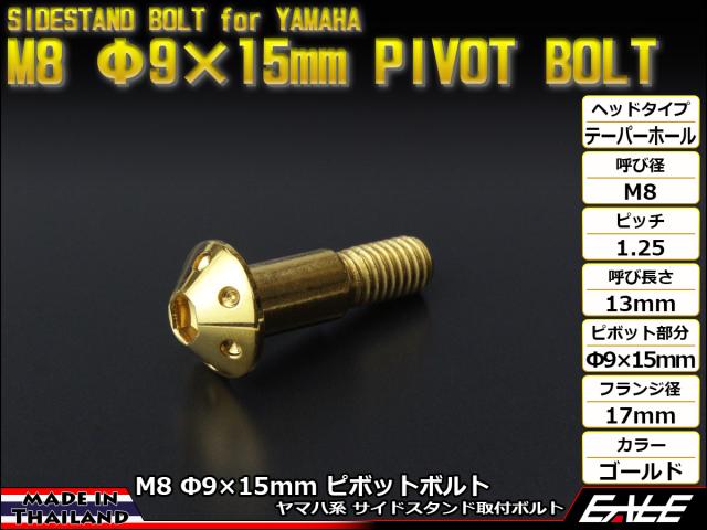ヤマハ用 SUSステンレス 削り出し テーパーホールヘッド サイドスタンド ピボットボルト M8 P=1.25 Φ9×15mm ゴールド TH0450