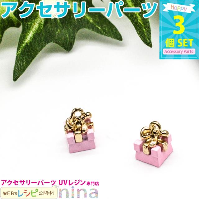 プレゼント ボックスチャーム リボン ピンク 3個セット ボックスチャーム アクセサリー ペンダント ボックスチャーム レジン液 リボンパーツ 白 チャーム フラクト ホワイト デコパーツ ギフト ネックレス デコ