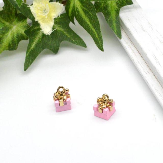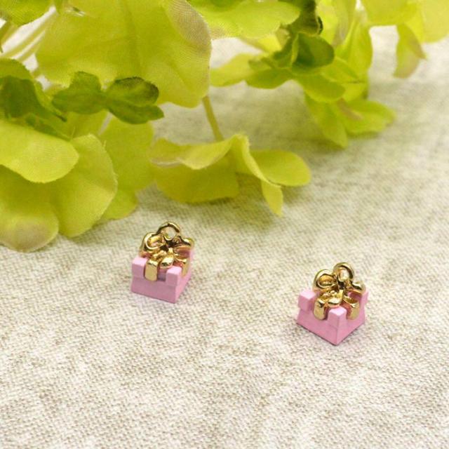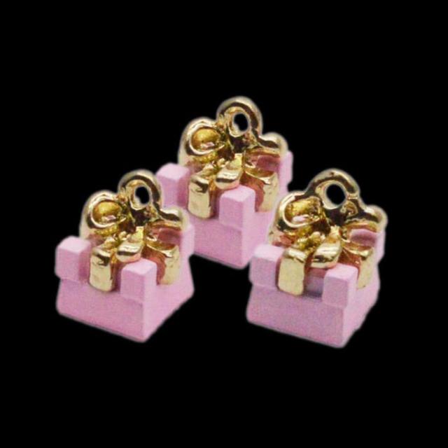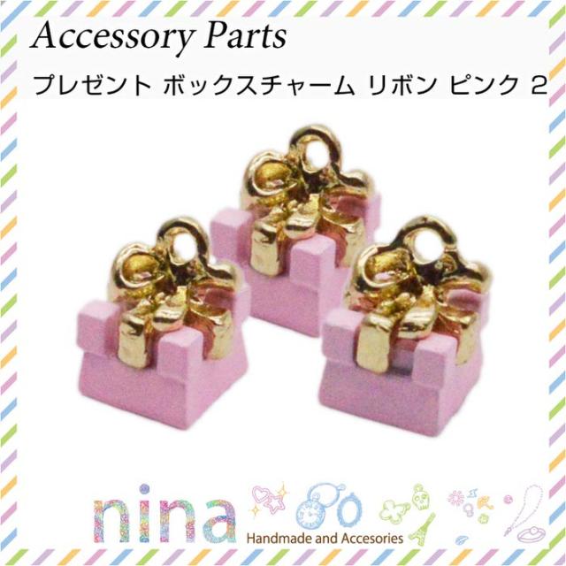 ■商品名:プレゼント ボックスチャーム リボン ピンク 3個セット