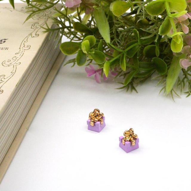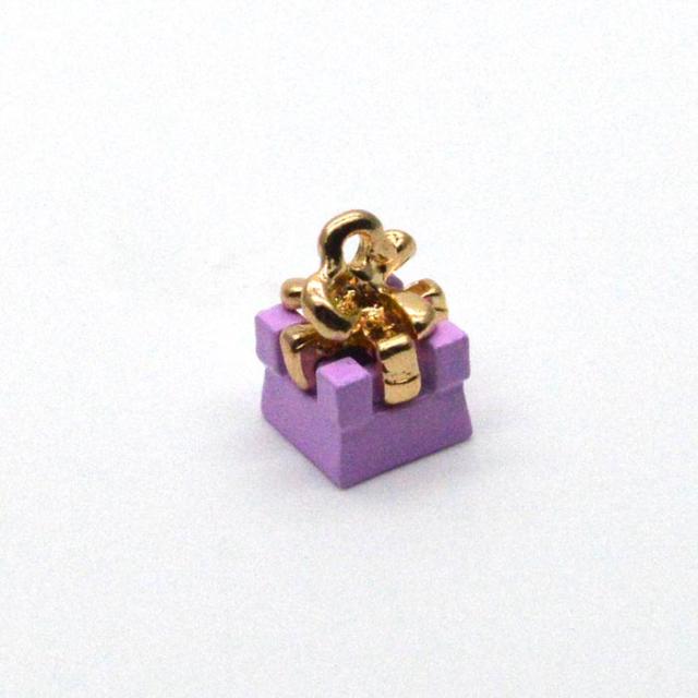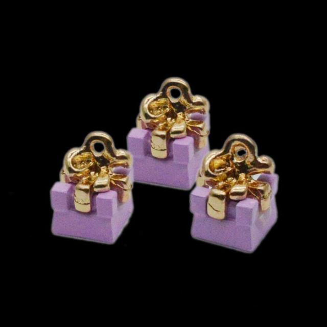 プレゼント ボックスチャーム リボン 紫 3個セット | 手作りクラフトでプレゼントチャーム! / リボンパーツ ボックスチャーム プレゼント 紫 レジン液 フラクト ハンドメイド ギフト ネックレス パープル デコパーツ デコ ペンダント 可愛い 手作り