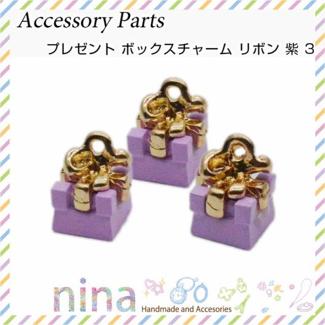 プレゼント ボックスチャーム リボン 紫 3個セット リボンパーツ 紫 フラクト リボンパーツ デコ ボックスチャーム パープル プレゼント 可愛い デコパーツ レジン液 手作り ペンダント ネックレス