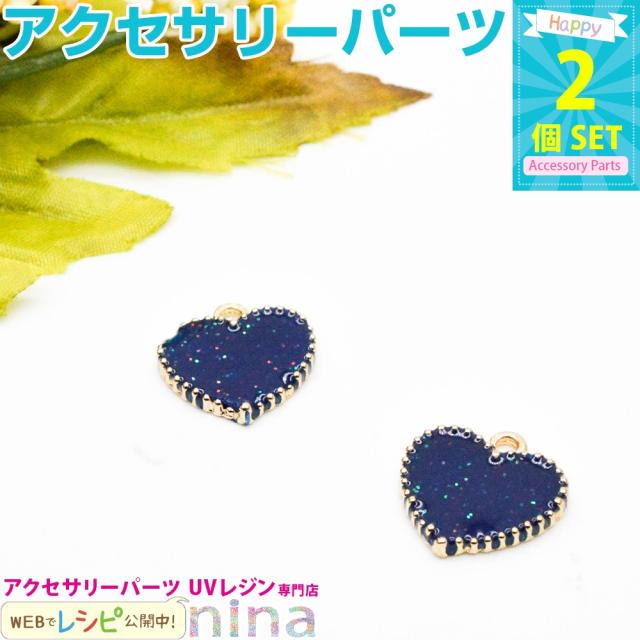 ハートペンダントパーツ 青 2個セット | ペンダントをハートチャームでもっと可愛く! / チャーム パーツ ハート ペンダント クラフト 可愛い ハンドメイド 素材 ブルー ネックレス 材料 青 プレート キーホルダー 手作り