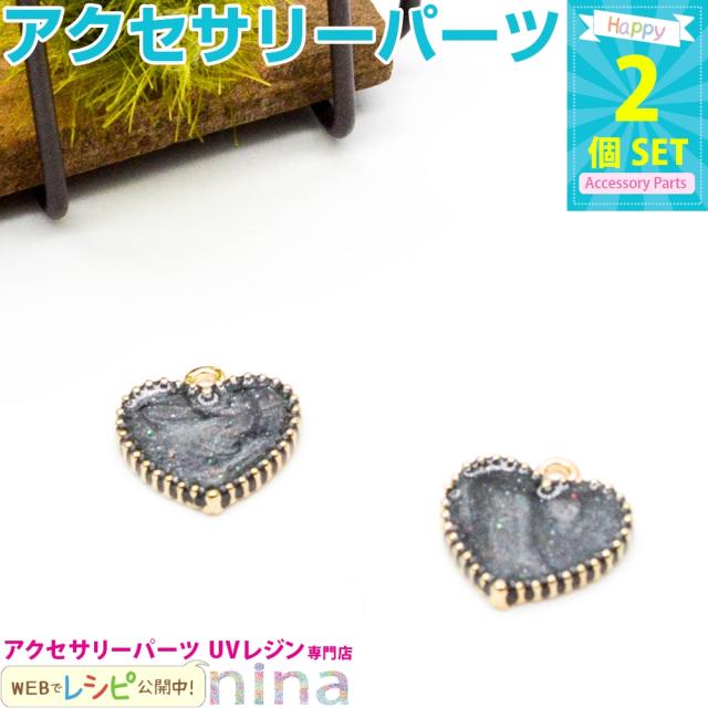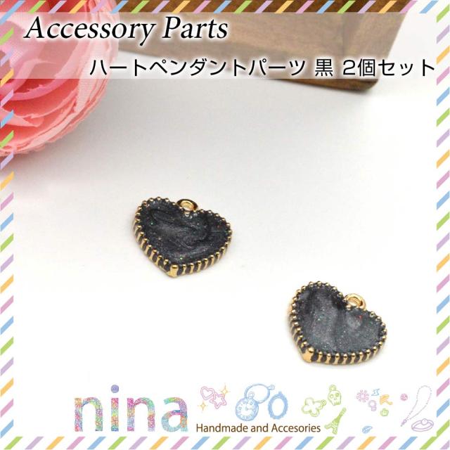 ■商品名:ハートペンダントパーツ 黒 2個セット