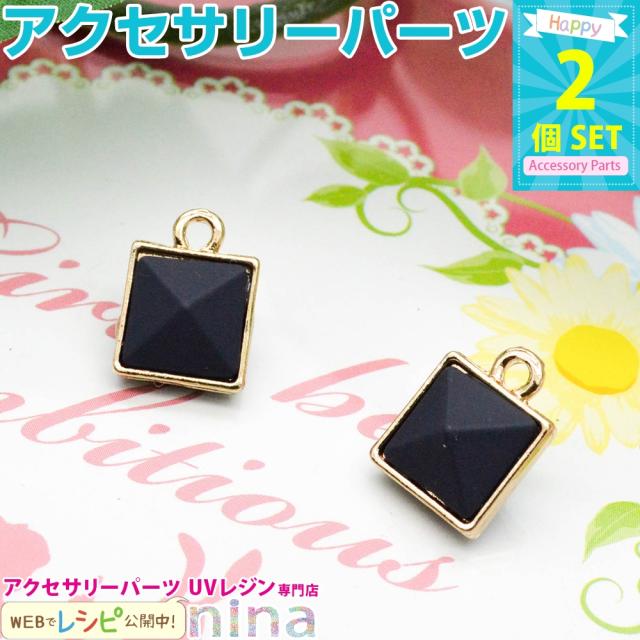 四角ジュエリーチャーム 青 2個セット チャーム ゴールド UVレジン チャーム 素材 四角 パーツ ピアス 手芸 ブルー 青 アクセサリー ハンドメイド 手作り