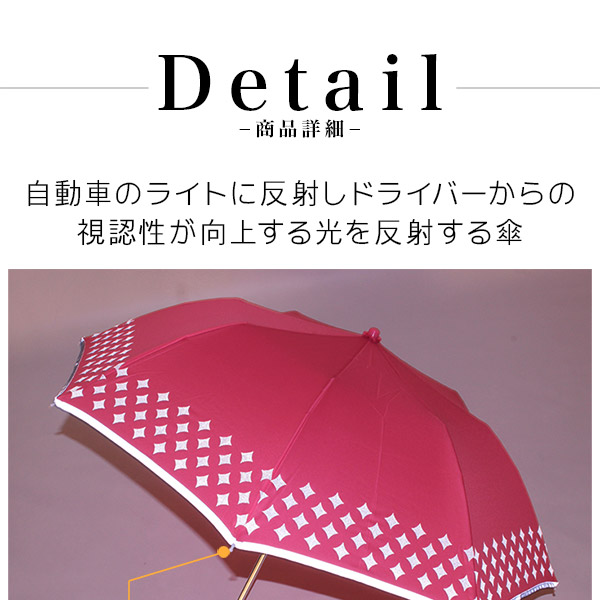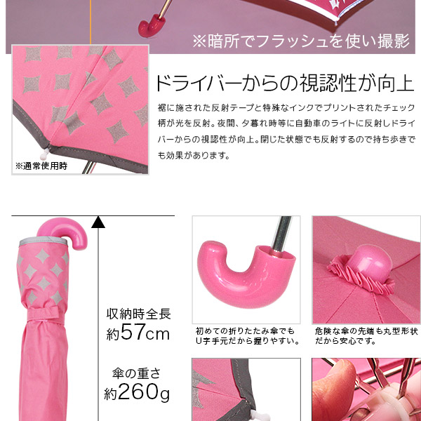 車のライトを反射してドライバーからの視認性を向上させる子供用折りたたみ反射傘。