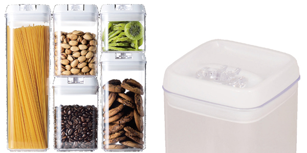 | 重ねてすっきり収納 容器はフタの上に重ねてスタッキングでき、キッチンや冷蔵庫のスペースを有効活用できるよう工夫されています。 | 高い密閉性で食品を守る 気密性と防水性が高く、ドライフードもウエットフードも保存可能です。 |