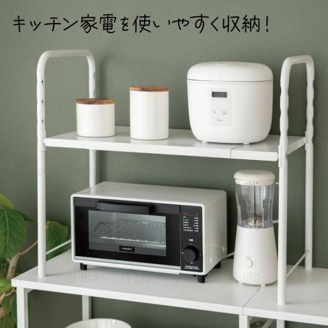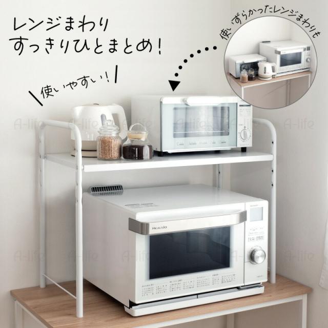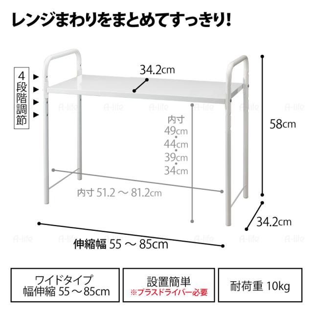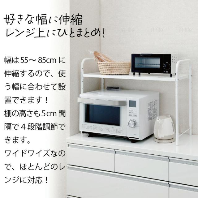 レンジ 上 ラック ワイド 伸縮 タイプ ホワイト レンジ台 レンジラック 棚 収納 整理 キッチン 台所 隙間収納
