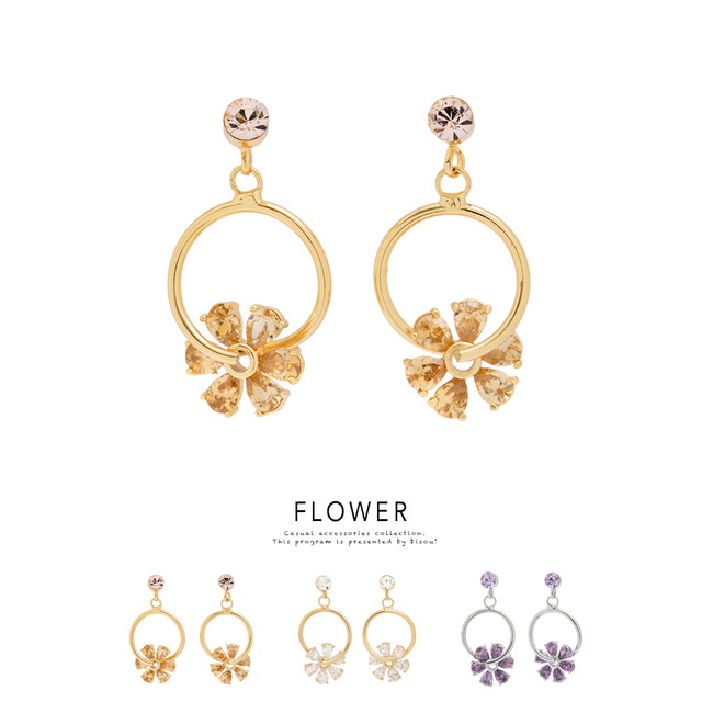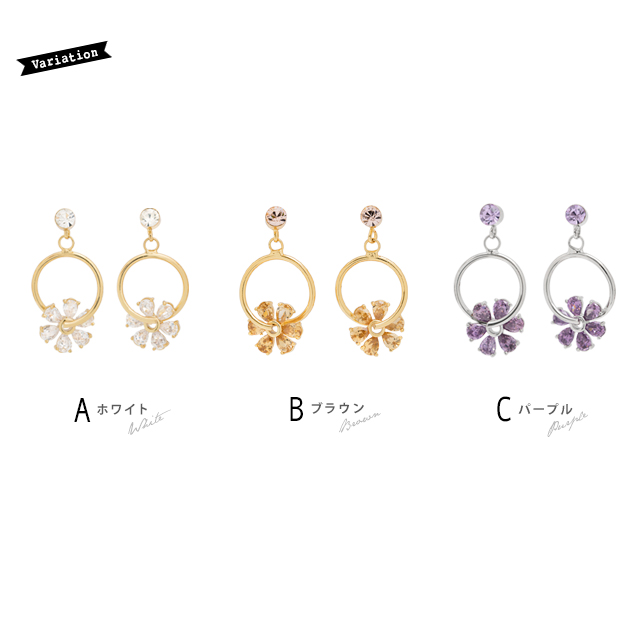 【カラーストーンのフラワーが上品なスタッドピアス】フラワー/カラーストーン/フープ/パーティー/上品/アクセサリー