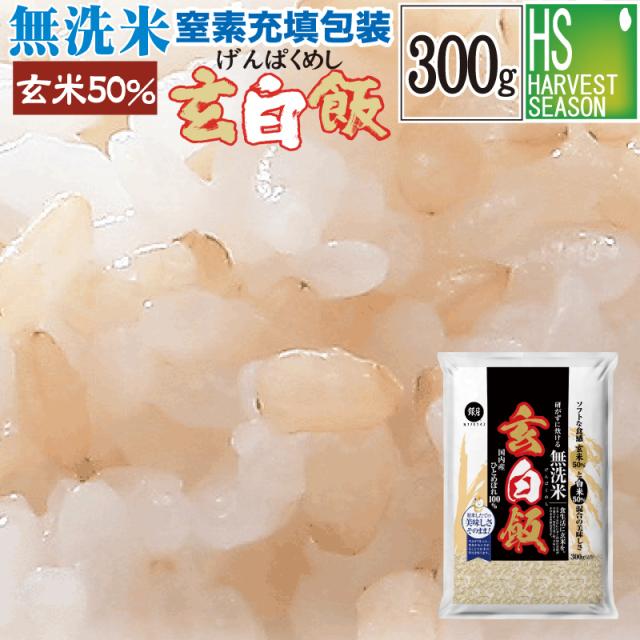 令和7年産【メール便送料無料】 無洗米 玄白飯(げんぱくめし)300g(2合)【鮮度を保つ窒素充填】