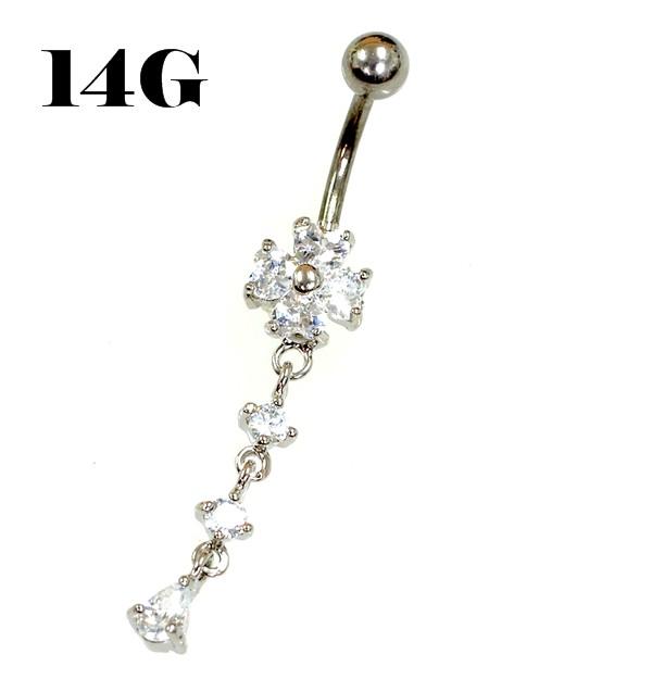フラワー/花 3連チャーム バナナバーベル/へそピアス サージカルステンレス【14G】