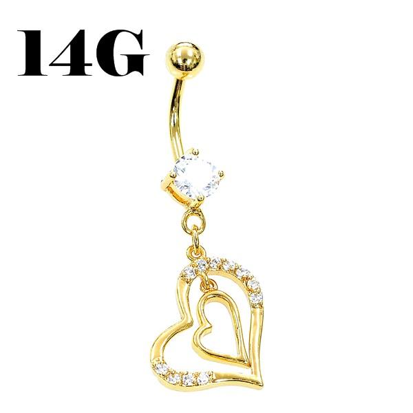ゴールド オープンハート型 ジュエルバナナバーベル/へそピアス サージカルステンレス316L(医療用)【14G】